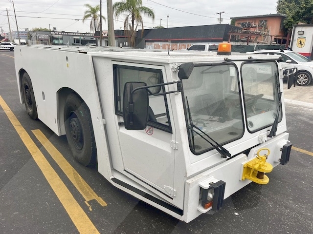 The TMX-400 aircraft towing tractor has 4 wheels steer and 4 wheels drive. It has the ability to perform push and pull operations on aircraft up to Boeing 747.